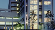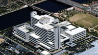 福岡県 高度な診療と研修を併せもつ総合医療センター。博多湾への眺望に配慮した棟の配置。